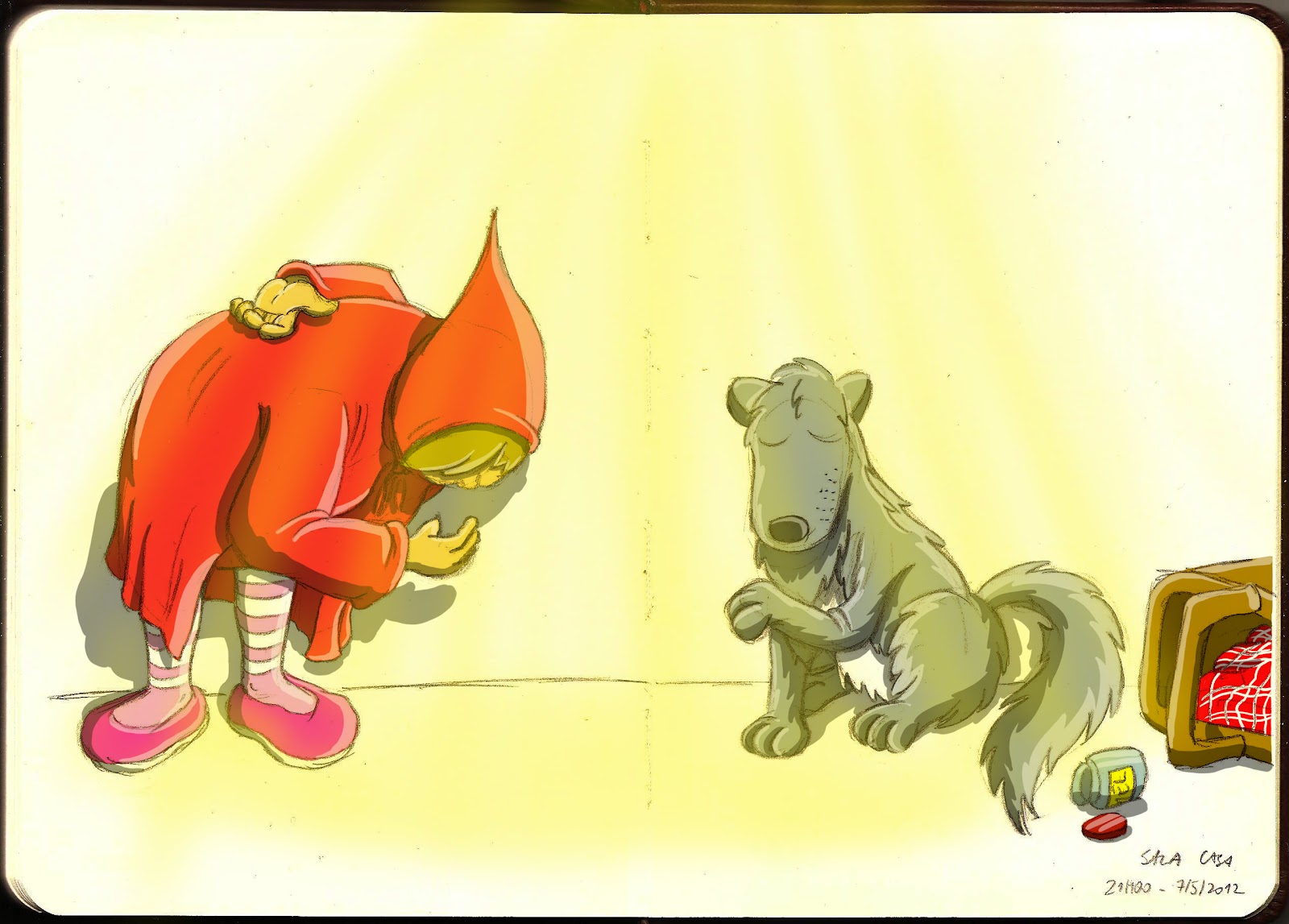 O Capuchinho e o Lobo vão agora, finalmente, comer qualquer coisita antes de irem tomar banho e descansar, depois de uma semana em que estiveram que estar sentados e abraçados um ao outro.